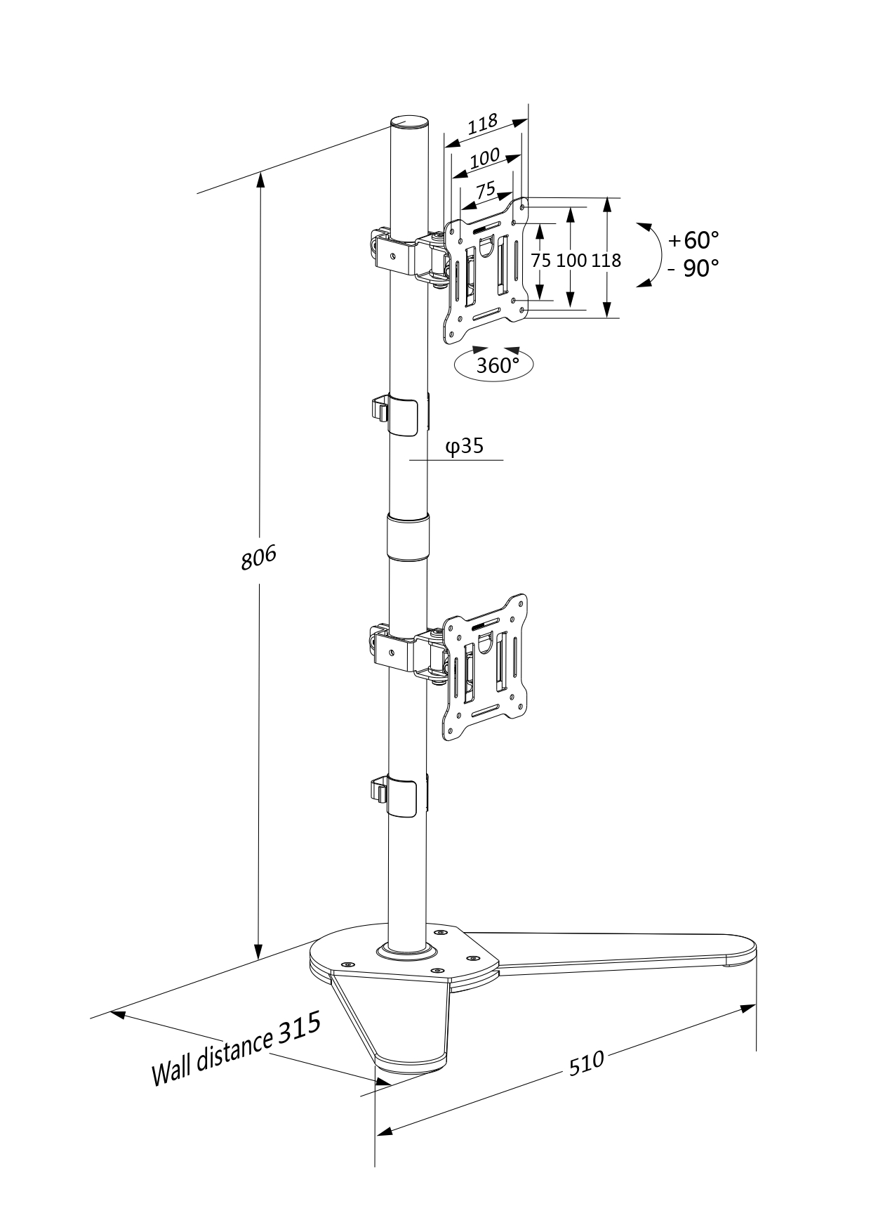 - Allows flexible movement for precise monitor positioning.